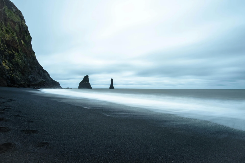 Il colore nero della sabbia, unico e ipnotizzante, è il risultato diretto delle eruzioni del vulcano Katla, noto per la sua attività frequente e la sua forza devastante.