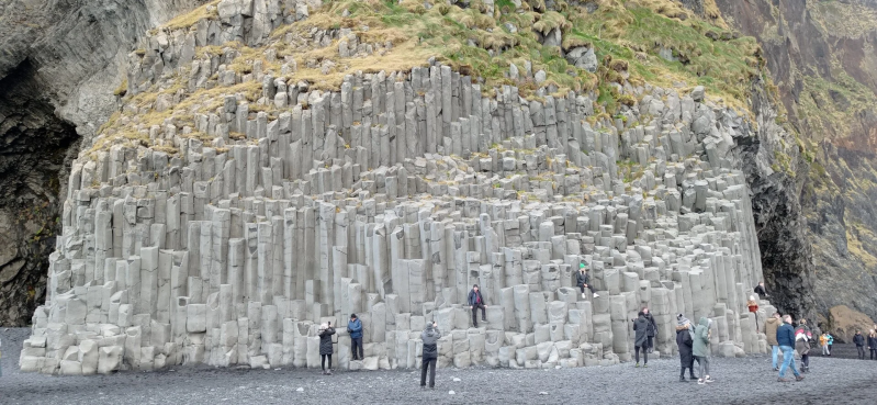 Uno dei tratti più distintivi di Reynisfjara è la sua imponente scogliera di colonne di basalto. Queste colonne esagonali, che ricordano le canne di un organo gigante, si innalzano imponenti dietro la spiaggia, creando un effetto visivo straordinario.