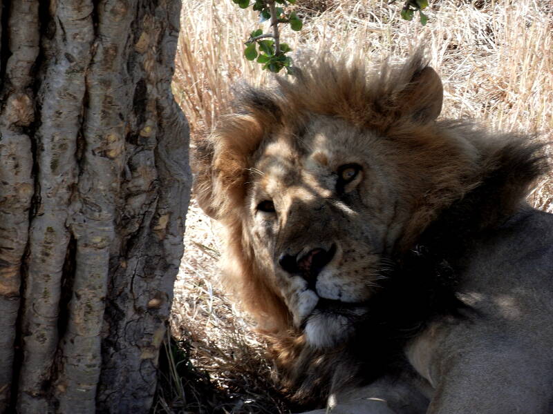 A pochi metri, stesi sotto un albero, ci sono due leoni maschi.