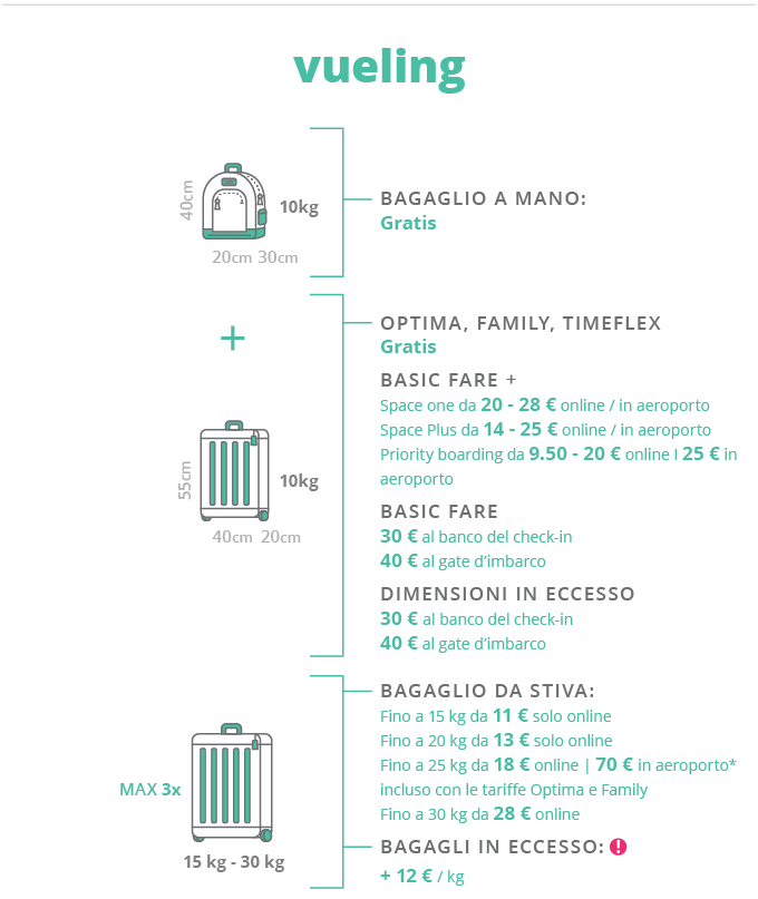 Vi riporto di seguito qualche informazioni utile in merito a dimensioni e peso consentiti dalle compagnie più gettonate: