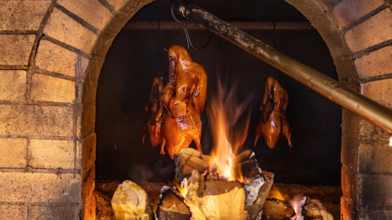 Le anatre arrostite con questo tipo di legna presentano un colore rosso come quello dei datteri, con la pelle croccante e la carne tenera, e il profumo emesso da quella legna speciale che le rende ancora più squisite.