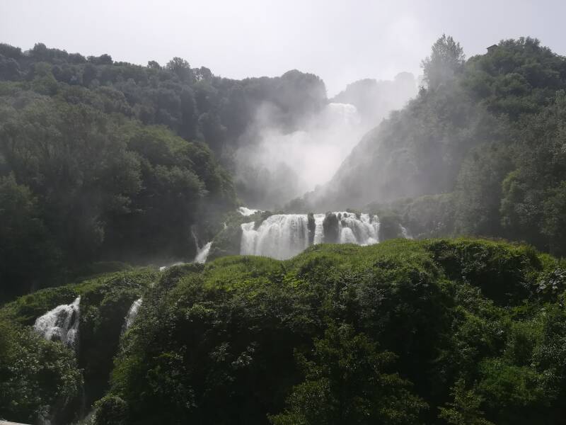 Il canale portò a defluire l’acqua con un salto naturale nei pressi di Marmore, precipitando direttamente nella gola del fiume Nera.