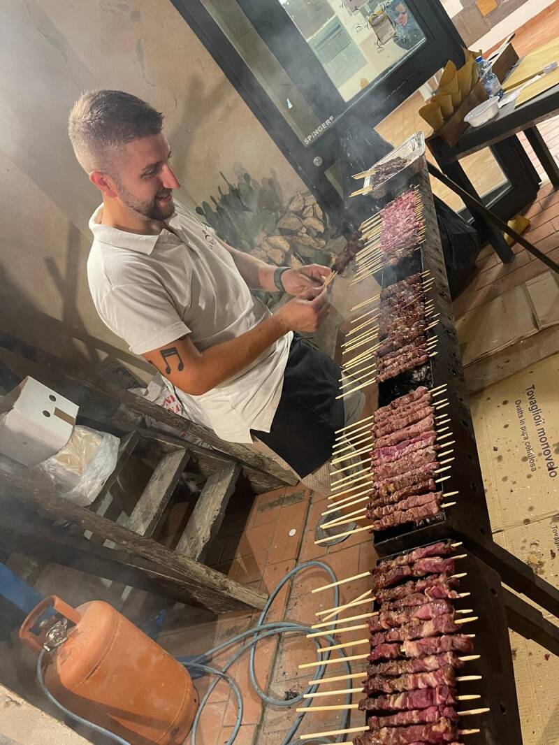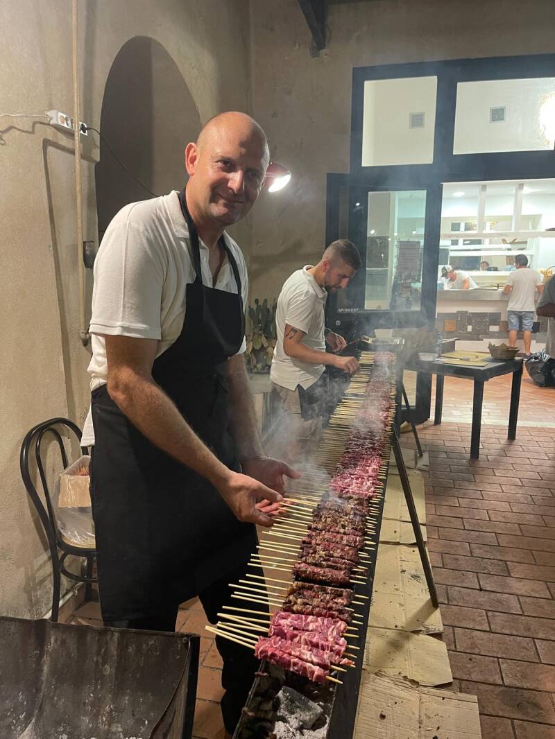 Ma i veri eroi della serata sono loro, al lavoro per cuocere migliaia di arrosticini!