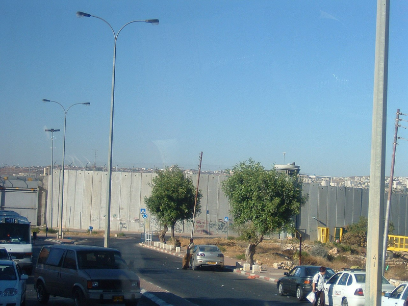 Muro che separa il territorio direttamente controllato da forze israeliane da Betlemme, visto dal lato israeliano.
